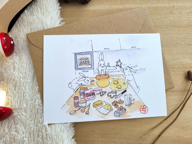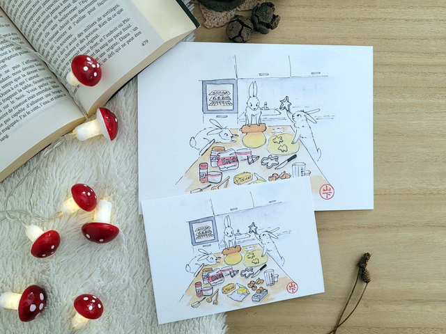 Je crée mes illustrations à l'aquarelle avec beaucoup de plaisir et de fantaisie. Elles sont imprimées par un professionnel local sur un papier texturé de haute qualité.
